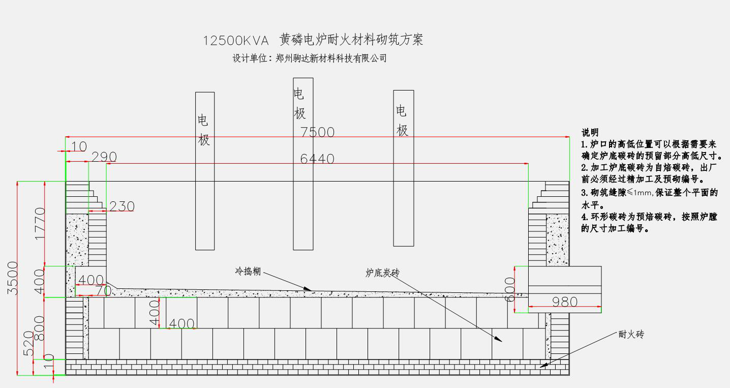 黃磷電爐耐火磚砌筑方案